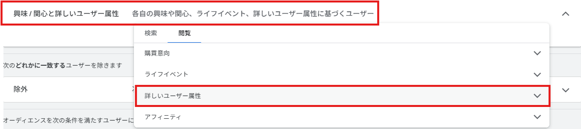 最近は「P-MAX」や「AI MAX」など完全自動化での広告配信が主流になりつつあり、上記のようなオーディエンス設定による配信を行う方も減ってきているのではないでしょうか?