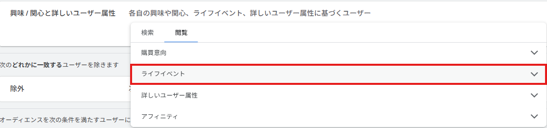 ・ライフイベント、詳しいユーザー属性
