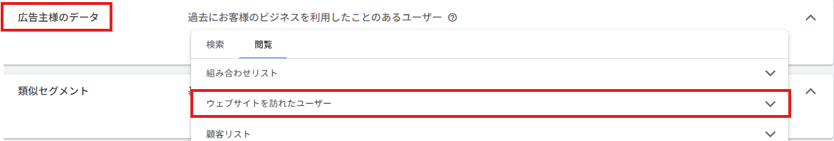 広告主のデータを使用して、サイトを訪問したことがあるユーザー向けにターゲティングをカスタマイズできます。